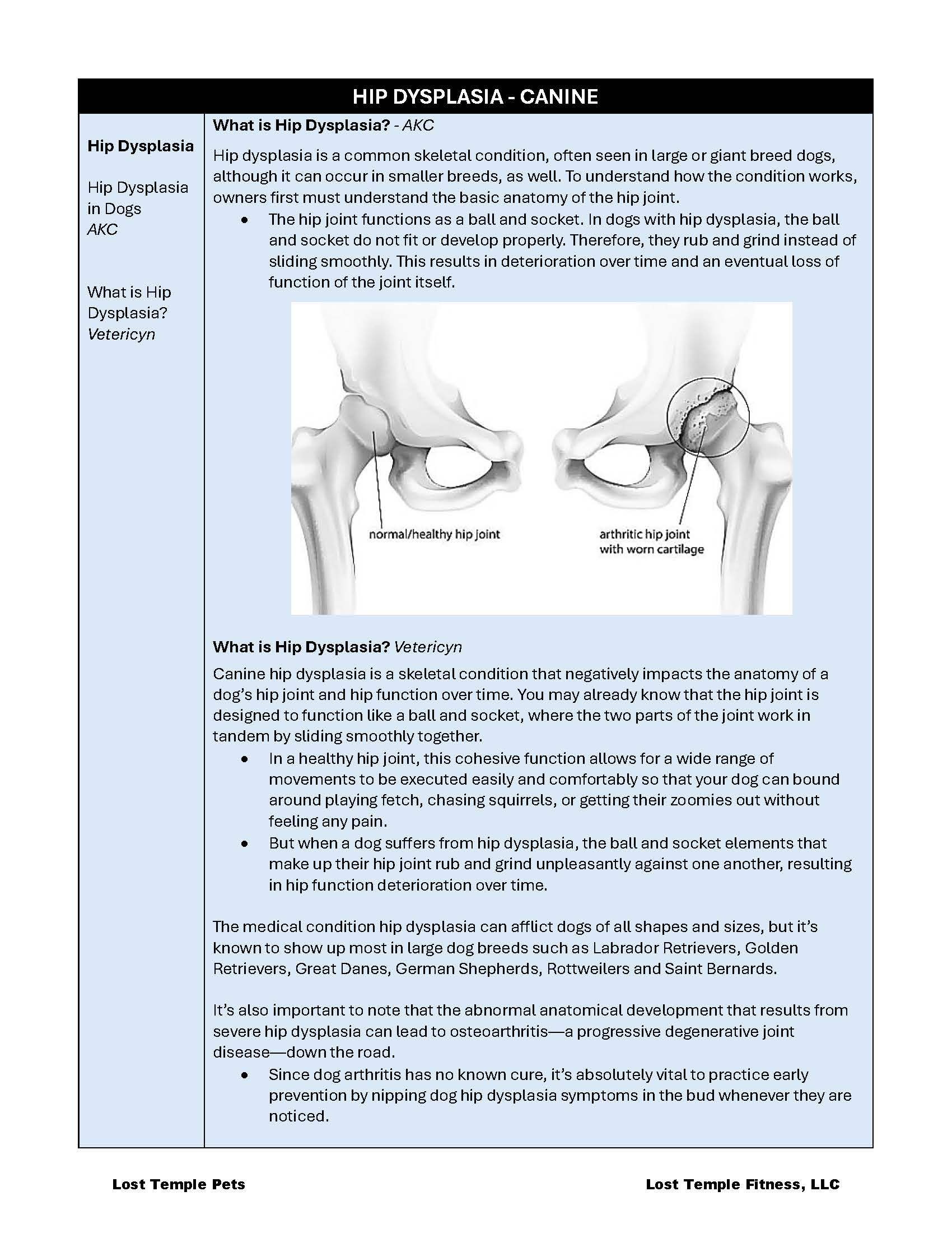 This section includes the description of Hip Dysplasia, Causes, Breeds at Risk, Prevention, Medical Management, Treatment and possible Surgeries.